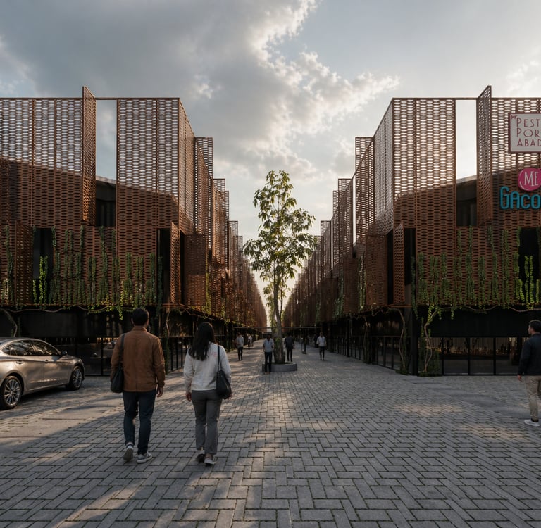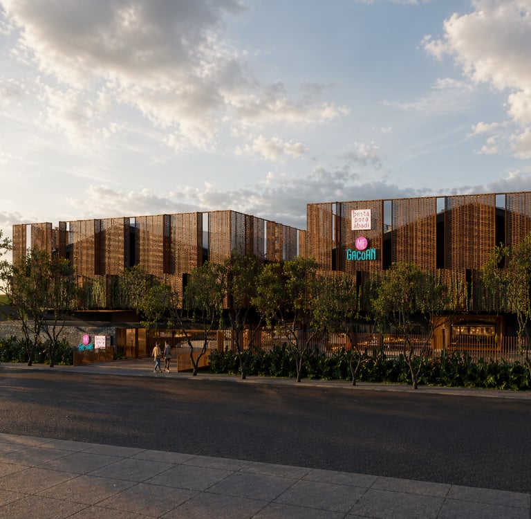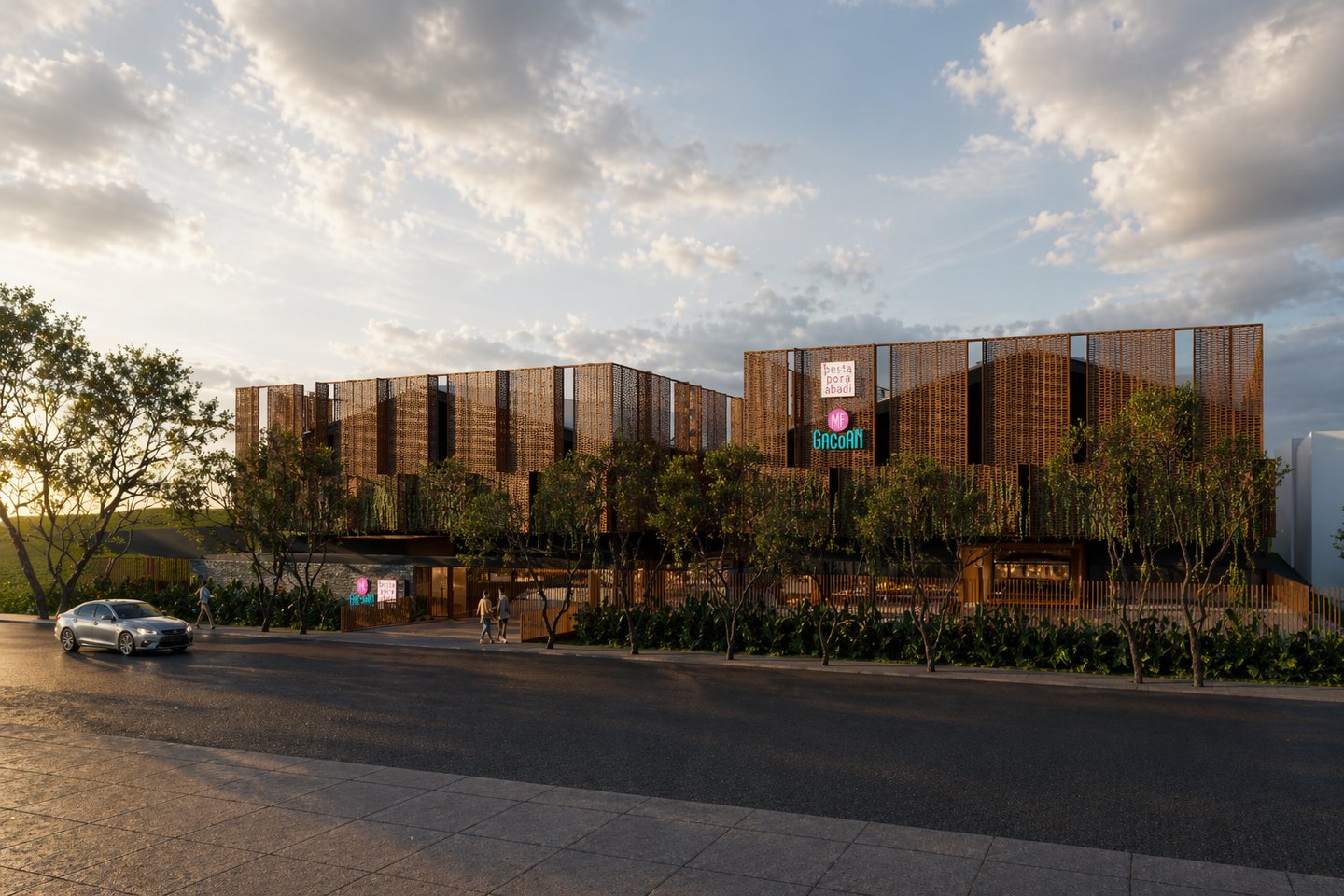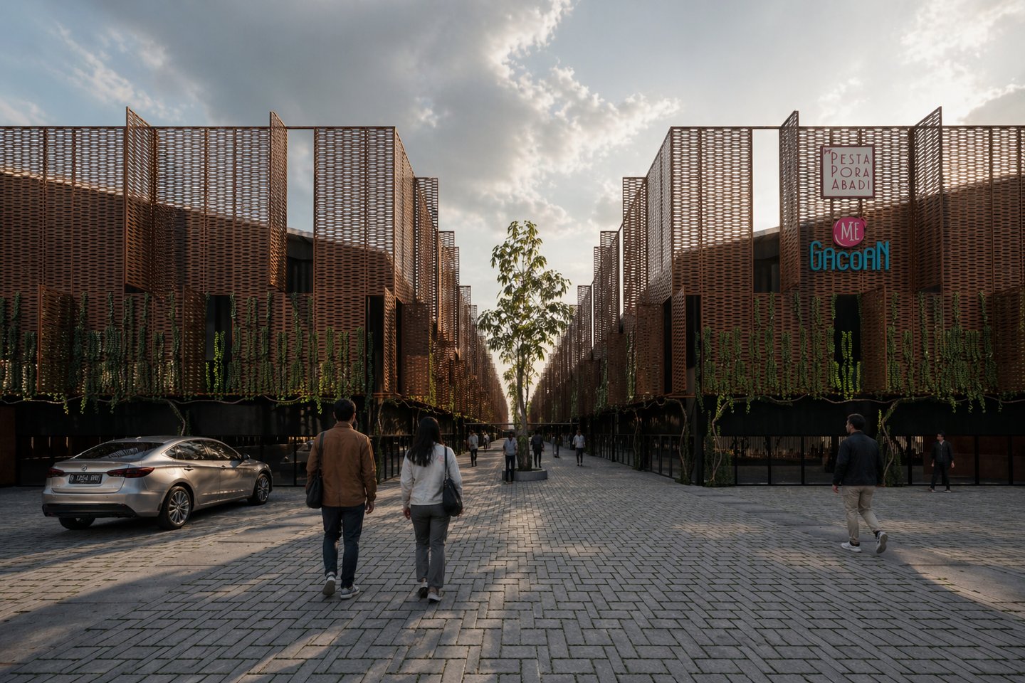 the design concept for the pt. pesta pora abadi headquarters (mie gacoan) adopts an adaptive reuse approach through a facelift strategy applied to the existing building. this is reinforced by the addition of a secondary façade, integrated greenery, and the exploration of honest and expressive natural materials.